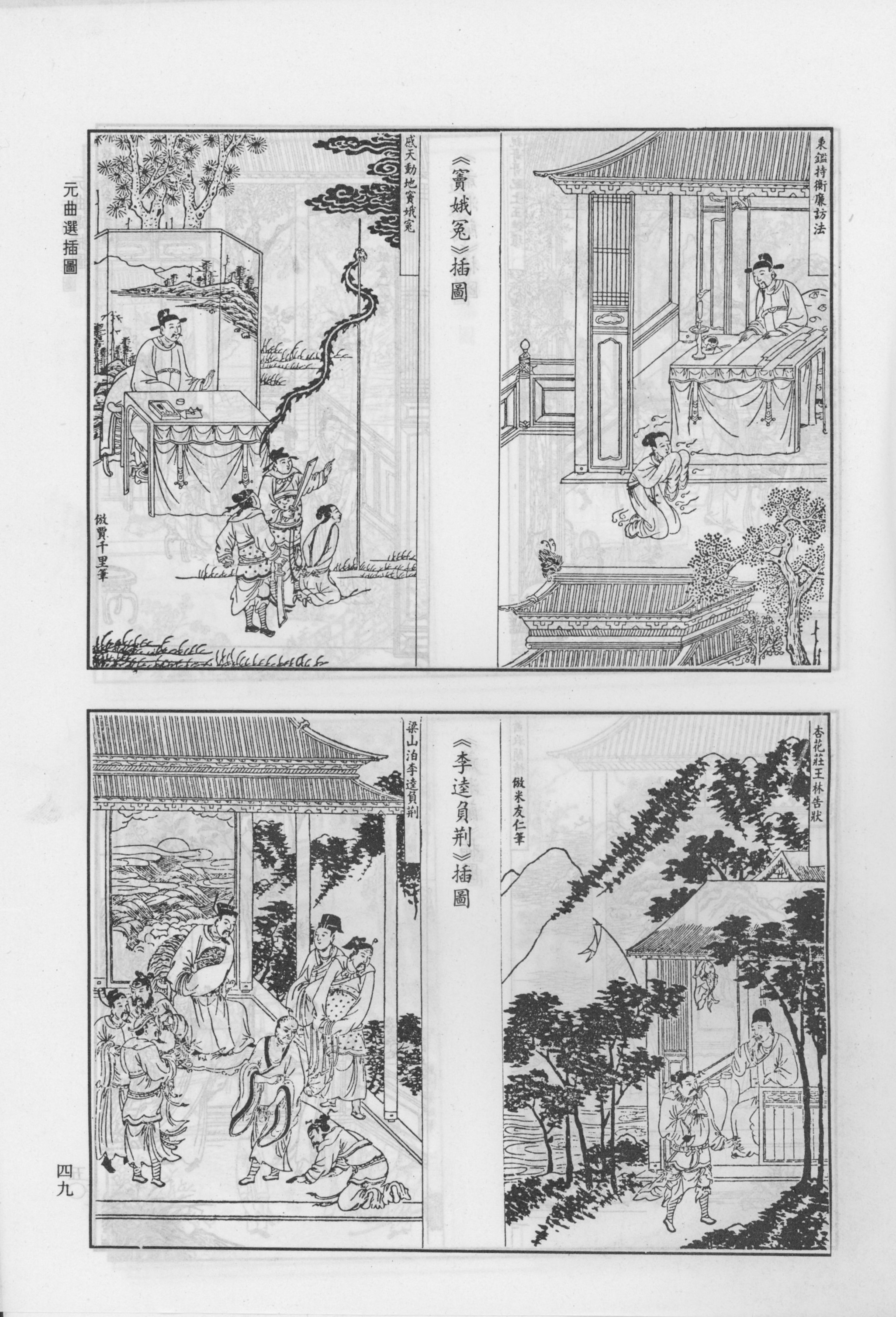 Guan Hanqing’s The Injustice of Dou E (Dou E yuan 竇娥冤) is a case in point. Featuring both a corrupt judge (act 2) and a skeptical, but ultimately just one (act 4), the play turns a young widow on the receiving end of many misfortunes into the central lever for the welfare of her community. The central ideological conundrum of the play resides in the quandary over whether or not a widow is at liberty to refuse remarriage. Guided by her desire to be loyal to her deceased husband (widow chastity) and her wish to be a responsive and devoted daughter-in-law (filial love), the main protagonist, young Dou E is adamantly opposed to the prospect of remarriage. By contrast, her mother-in-law gives in to the opportunity for remarriage in response to a complex emotional mix of coercion, indebtedness, and enchantment. The dramatic conflict arises from a clash between Dou E’s embrace of these normative virtues and the refusal of the people around her to honor her aspirations either on account of convenience, sexual aggression, greed, or worries over family reputation (Fig. 2).