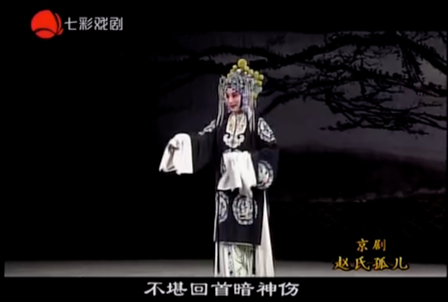 In Peking Opera, two foundational renditions of The Orphan of Zhao stand out. One is the rendition entitled “Searching for the Orphan and Saving the Orphan” composed by Tan Xinpei 谭鑫培 (1847-1917) and later performed by Yu Shuyan 余叔岩 (1890-1943) and by Meng Xiaodong 孟小冬 (1908-1977) from the Yu school. Yu Shuyan recorded two arias from this play in 1925, namely “I have received the order in the Baihu Hall (白虎大堂奉了命)” and “My wife! No need to be so fierce (娘子不必太烈性).” Both are renowned as classics of “old male” (laosheng 老生) performance. Another prominent version is the one composed by Ma Lianliang 马连良 (1901-1966) in 1959, known as The Orphan of Zhao. Unlike the condensed four-scene play Search for the Orphan and Saving the Orphan, Ma Lianliang’s version narrates the whole story of The Orphan. In the “Ink and Vermilion” edition performed by Wang Peiyu 王珮瑜 (1978-), she combines the two aforementioned versions selectively, telling an intriguing story while maintaining the representative arias from both editions.